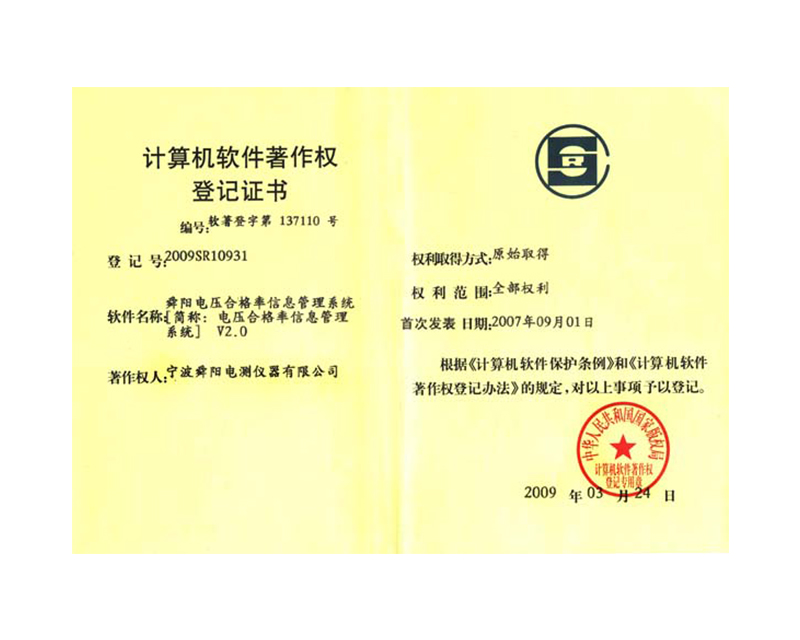 舜陽(yáng)電壓合格率信息管理系統(tǒng)2.0軟件著作權(quán)證2020-09-17
