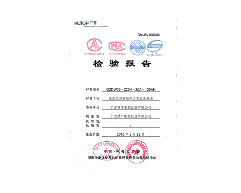 微機(jī)監(jiān)控高頻開關(guān)直流電源柜檢驗(yàn)報(bào)告2020-09-17